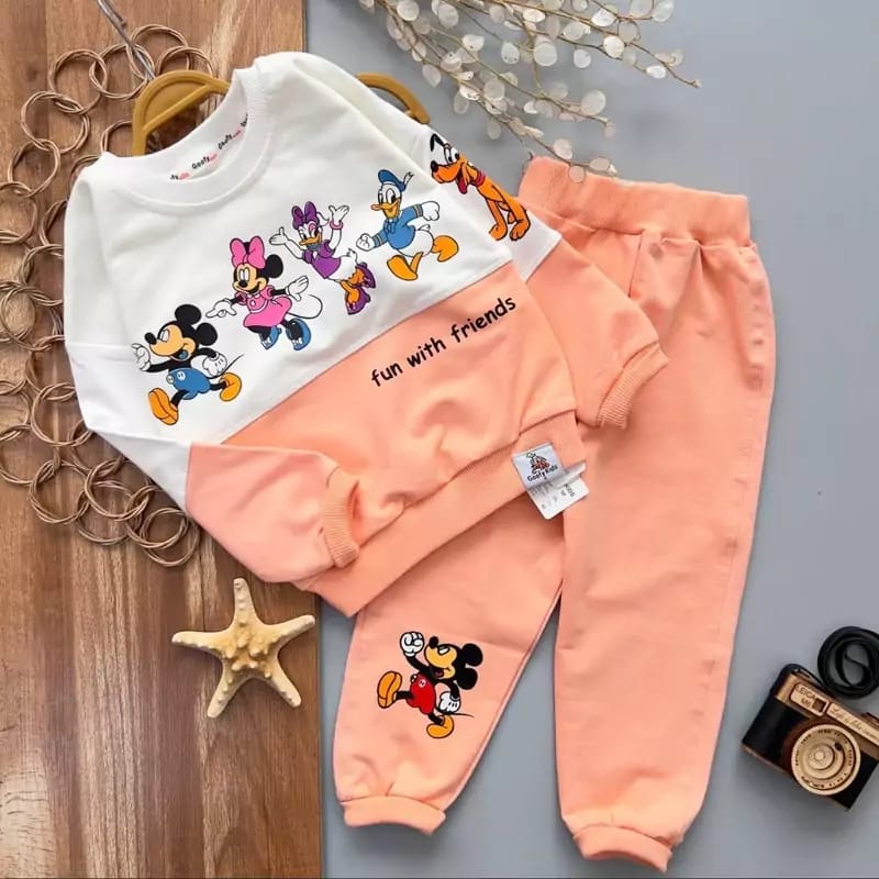 Hermoso y delicado conjunto deportivo de Mickey y sus amigosPara niñas desde la talla 2 a la 16.