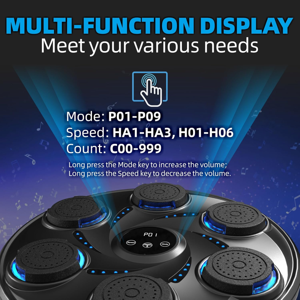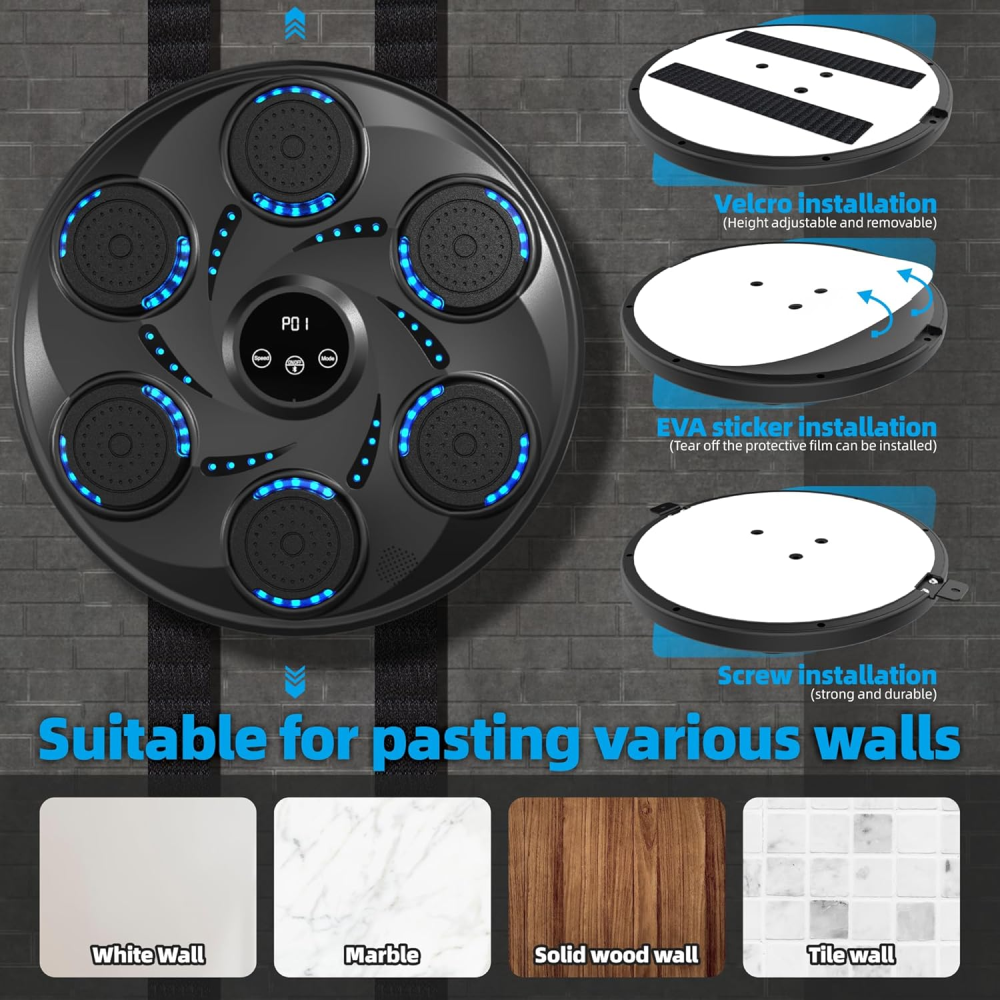 Máquina de boxeo musical 2024 con guantes de boxeo, boxeo musical inteligente montado en la pared, equipo de boxeo electrónico para entrenamiento para el hogar PARA TODAS LAS EDADESActualización divertidaLa última máquina de boxeo musical 2024 - Tecnología Beat Sync - Movimiento divertido al ritmo de la música. La máquina de boxeo está equipada con 9 modos y 9 velocidades para que elijas, lo que te permite perforar más libremente. El equipo de entrenamiento es la herramienta perfecta para el entrenamiento profesional y el ejercicio diario, y puede ser utilizado por boxeadores profesionales, trabajadores de oficina, niños, etc.Bluetooth y sonido estéreoEl Bluetooth inteligente se conecta a la máquina de entrenamiento de música de boxeo en un segundo, elige tu música favorita y haz ejercicio felizmente. La combinación perfecta de sonido envolvente estéreo e iluminación fresca te sumergirá en tu entrenamiento de boxeo. ¡La feroz colisión de la música y los deportes encenderá tu pasión por la vida!Pantalla LED y reproducción ilimitadaPanel multifuncional, di adiós a operaciones complejas, operación con un solo toque. La función de boxeo musical tiene un conteo preciso e inteligente, y cada golpe innovador será testigo de tu crecimiento. La máquina de música de boxeo tiene una fuerte duración de la batería, lo que te permite perforar tanto como quieras y desafiar varios límitesFácil de instalarMáquina de boxeo de música montada en la pared, 3 métodos de instalación. El velcro es ajustable en altura y adecuado para su uso por toda la familia. El montaje de tornillo también es una opción para fijar el equipo de entrenamiento de boxeo firmemente en la pared sin que se caiga. La máquina de boxeo musical viene con un par de guantes, lo que te permite disfrutar del ejercicioServicio posventa profesionalCada máquina de boxeo de música casera ha sido estrictamente probada para garantizar una alta calidad. Si tiene algún problema durante la instalación o el uso, comuníquese con nosotros para una resolución rápida.Modelo: KO-01conexión Bluetooth 4.0Luces LED: Sincronizadas con la músicaModos: 9 modos 9 velocidades ajustablesParlante incorporado: sonido de alta calidadBatería: Interna Recargable 2000mahTiempo de uso: 4 - 6 Horas aprox. Tiempo de carga: 4 horas. Tamaño: 49cm x 5cm Color: NegroMaterial: PP + Almohadilla SuaveFacil de instalar. Lo que obtienes con tu compra:1 x Entrenador de Boxeo1 x Par de Guantes1 x Cable de carga USB1 x Manual (idioma español no garantizado)*Condiciones para la solicitar la garantía del producto:Ten en cuenta que el producto debe llegar en buen estado físico, sin golpes, rayones, o fisuras, por tanto, te recomendamos empacar muy bien en una caja de cartón, protegiendo con plástico burbuja o papel. En caso de llegar golpeado o dañado por la transportadora no podemos hacernos responsables del producto, tampoco iniciar el proceso de garantía. La garantía sólo cubre defectos de fábrica, no cubre daños ocasionados por el comprador.