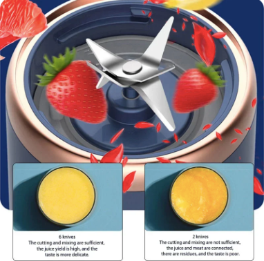 1. Esta taza de zumo portátil cuenta con un motor de alta potencia, una velocidad superalta y una cuchilla de acero inoxidable, prensado fuerte y rápido en fresco, puede preparar una nutritiva bebida de zumo en 9 segundos. Cuchillo de acero de seis hojas, incluso puedes romper hielo y fruta.2. Este exprimidor adopta un corte envolvente tridimensional, que puede triturar rápidamente los alimentos, ahorrando tiempo y esfuerzo. Solo necesita dos pasos: uno, añadir fruta fresca; dos, un botón para empezar a remover. También puedes añadir leche para que quede más deliciosa.3. Esta taza de jugo está hecha de polipropileno apto para uso alimentario y se puede poner en el lavavajillas, lo cual es muy práctico. Adecuado para zumos, batidos de proteínas, mermeladas, alimentos para bebés o mascarillas faciales caseras para satisfacer tus diversas necesidades diarias.4. Esta taza de jugo tiene una capacidad adecuada, es pequeña y exquisita, no ocupa espacio y es fácil de transportar. Es adecuada para actividades al aire libre como la oficina, el gimnasio, el campamento, etc., y puede disfrutar de alimentos frescos todo el tiempo cuando salgas.