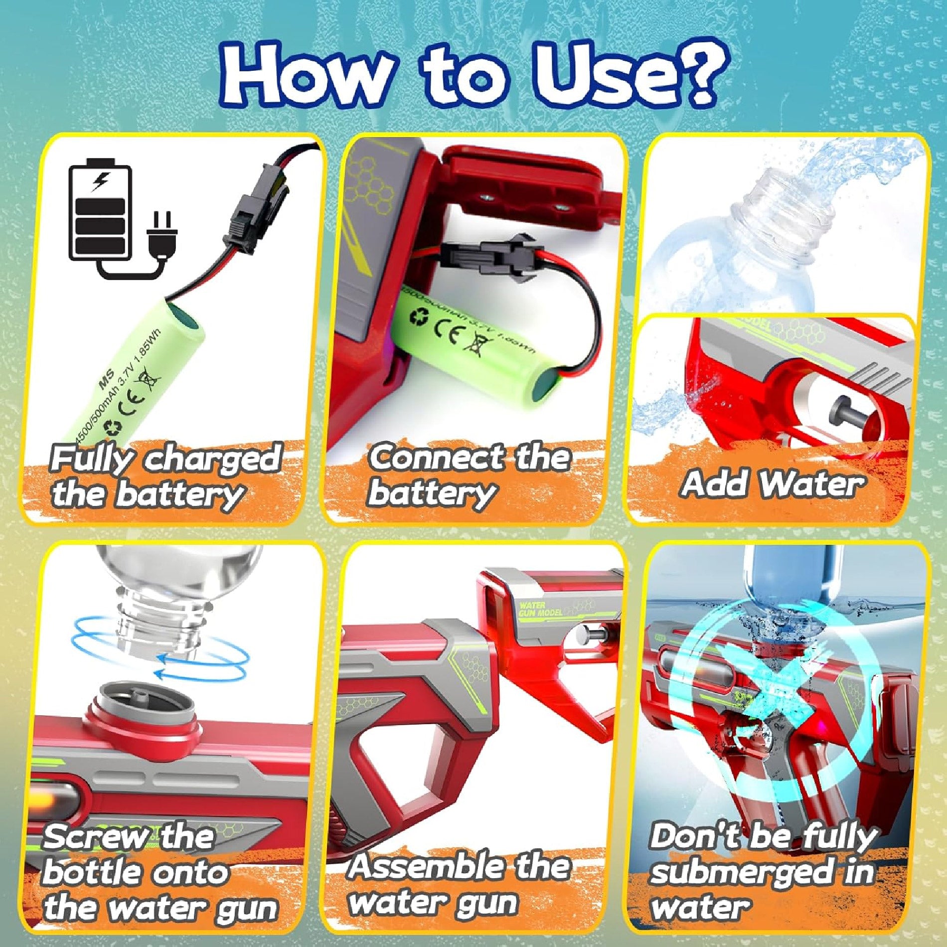 Pistola de agua eléctrica 2 en 1: la pistola de agua eléctrica de diseño 2024 se transforma en 2 pistolas de agua pequeñas, ofreciendo modos de disparo automático y manual. Su diseño de un solo botón hace que sea fácil para niños y adultos apretar el gatillo y comenzar la batalla acuática.Tiro rápido y largo alcance: la pistola de chorro con potencia de motor avanzada para disparar rápidamente y tiene un largo alcance de 5 a 7 Metros. Hace que golpear tu objetivo sea fácil sin importar dónde se encuentre. (No sumergir completamente en agua para evitar daños).Gran capacidad y luces LED: nuestra pistola de agua recargable viene con luces LED brillantes para una fácil visibilidad durante las batallas acuáticas, incluso por la noche. Con una gran capacidad de 200 cc y botellas de agua expandidas, proporcionando la máxima diversión para los niñosMaterial de alta calidad: la pistola de agua está hecha de plástico ABS de alta calidad, cumpliendo con las normas de seguridad de juguetes de Estados Unidos. El mango ergonómico antideslizante hace que sea fácil de usar para niños y adultos, proporcionando una mejor experiencia de disparo para todosEl paquete Incluye:1* Pistola de Agua Electrica1* Pistola de Agua Manual1* Bateria recargableGarantía sobre Defectos de Fabricación.